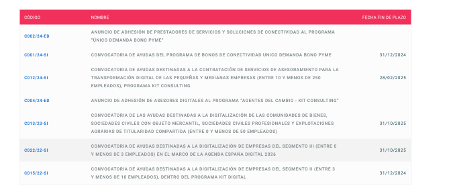 5. Elige la ayuda con el segmento que tengas. Por ejemplo, si estás en el segmento III (entre 0 y menos de 3 empleados) tu código sería el C022/22-SI