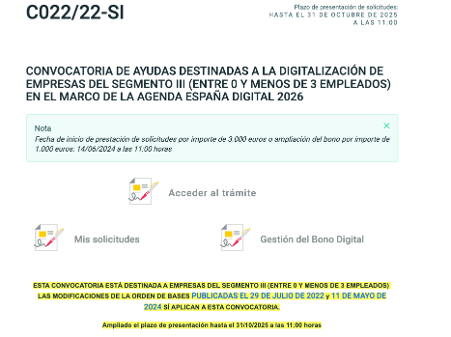 4. Solicitud del kit digital: tras determinar la elegibilidad, se asignará un bono cuyo valor varía según el segmento empresarial. Para acceder a este, deberás dirigirte a la sede electrónica y clicar en Convocatorias y ayudas.